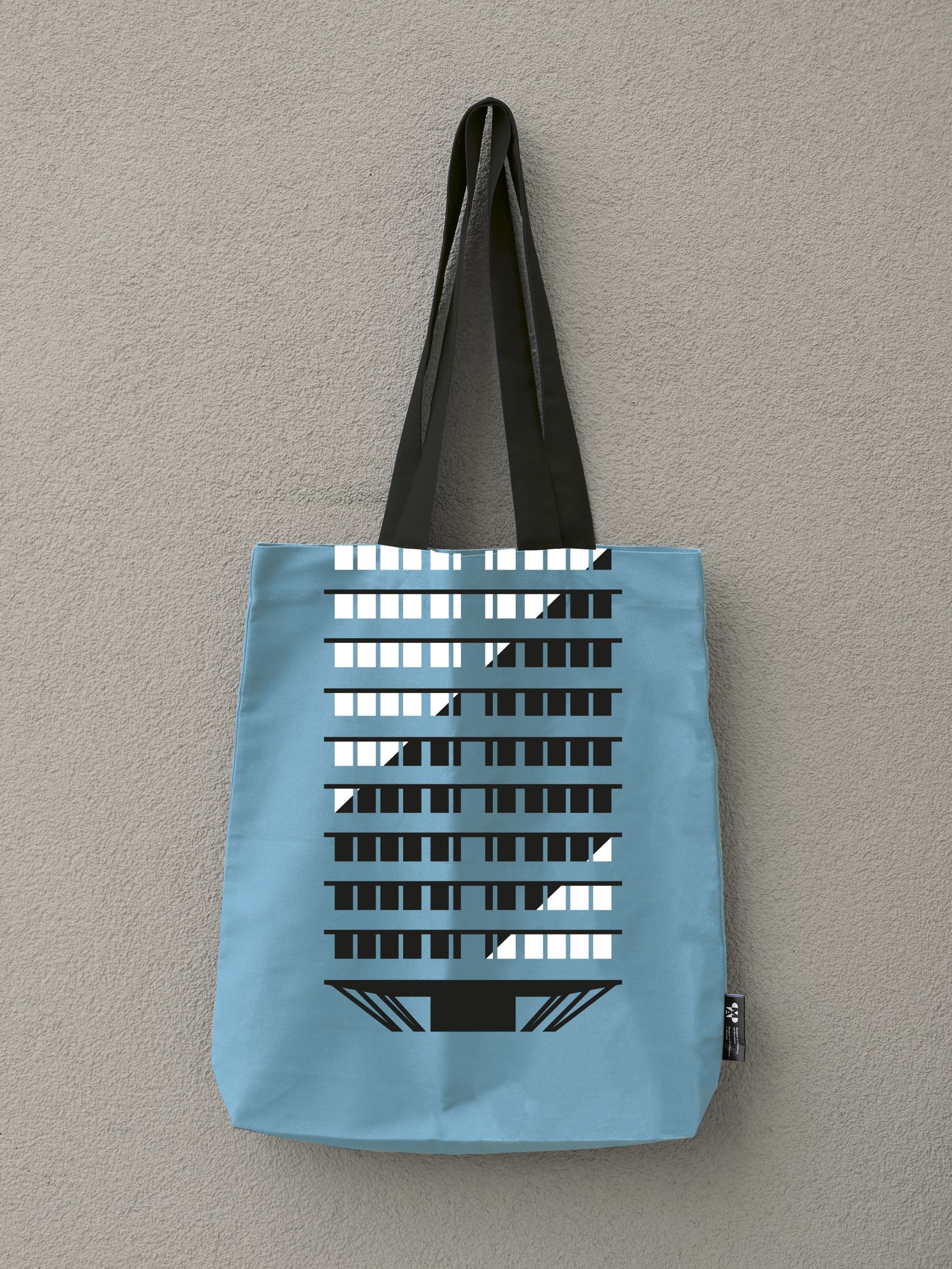 The motif of the bag is the Trzonolinowiec – multi-family building, designed by architect Jacek Burzyński and engineer Andrzej Skorupa (in collaboration with Zbigniew Kuziela) in 1962.