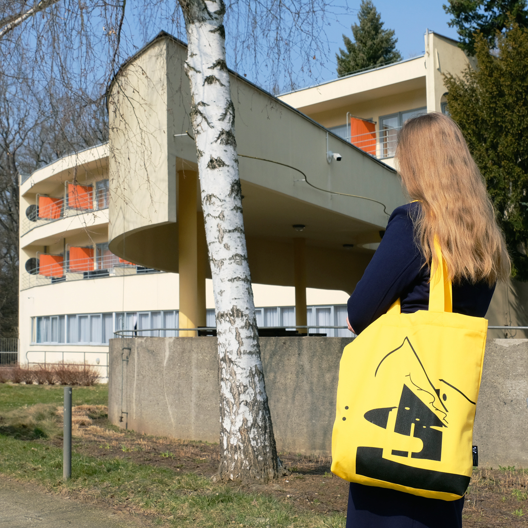 Motywem graficznym torby jest dom hotelowy dla osób samotnych i małżeństw bezdzietnych na osiedlu WUWA, zrealizowany w 1929 roku według projektu Hansa Scharouna.