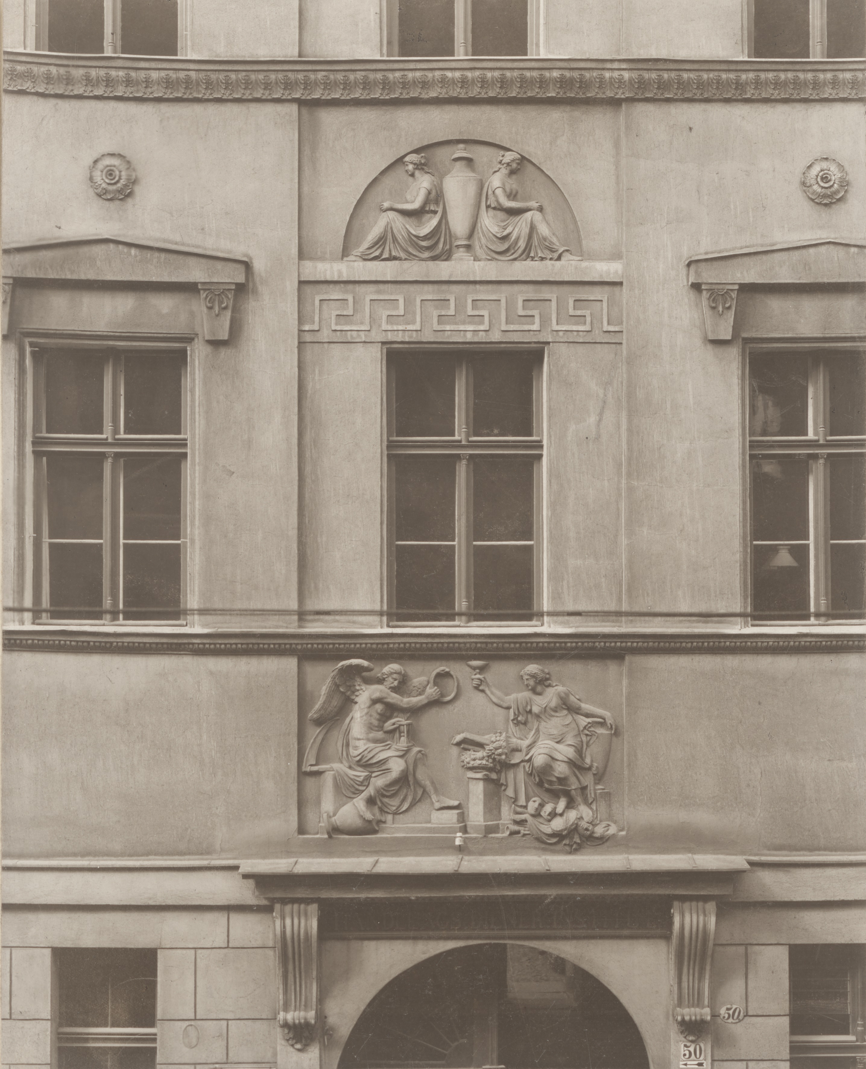 Fragment dekoracji na fasadzie dawnej kamienicy przy ul. Szewskiej 50/51, ok. 1904 r., Eduard von Delden, Heinrich Götz