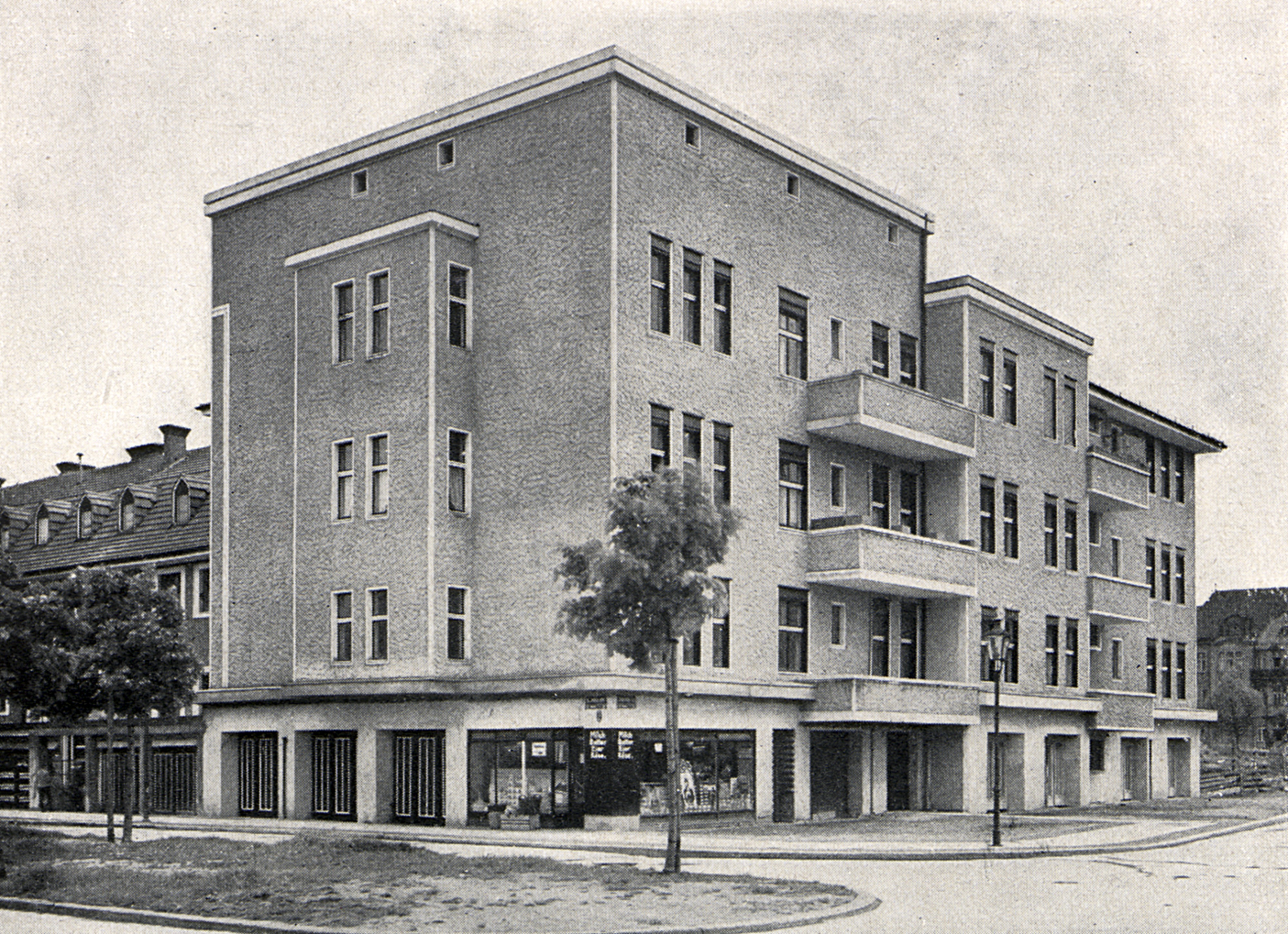 The Berlin-based Adolf Rading (1888-1957), an architect and a lecturer at the Wroclaw Academy of Arts and Crafts, was one of the most important figures of the Wroclaw architectural community during the inter-war years. The fact that Wroclaw was considered to be the city of the avant-garde during the Weimar period was largely due to his works. In architecture - both in terms of designs and in theoretical journals - he was interested in the problems of the “new apartment” and “new construction” in the urban context. Examples of him trying to tackle these issues were designs of experimental residential buildings, presented in the model housing estates of the German Werkbund in Stuttgart (1927) and Wroclaw (1929). He was also the designer of the Odd Fellow Lodge (later transformed into Lviv Cinema, built in 1925-27), a representative building used for meetings and social gatherings of the Masonic lodge in Wroclaw. In 1925, together with Hans Leistikov, author of the polychromes in the building, he rebuilt the Pod Murzynem pharmacy at today’s Solny Square, creating an unusual interior composition of colors, mirrors and glass. As a result of the further reconstruction and merging the pharmacy with the neighboring building, an avant-garde accent was created in the historical center of the city. The radicalization of political and social life as well as personal experiences after the takeover of power by national socialists led Rading to leave Germany in autumn 1933. After staying in France and Palestine, where his work included the urban design of the city of Haifa, he died in London in 1957. He never returned to his home country.