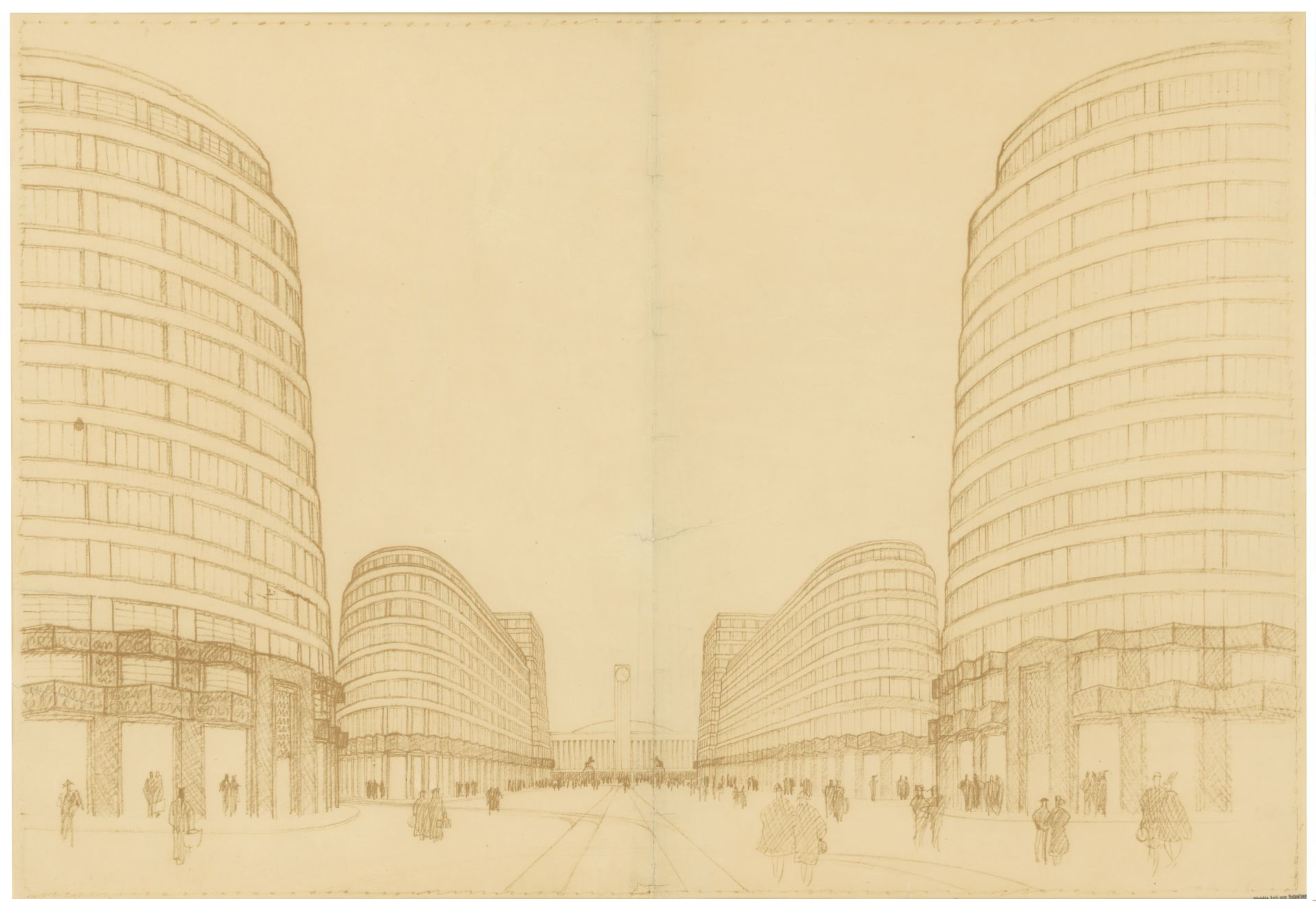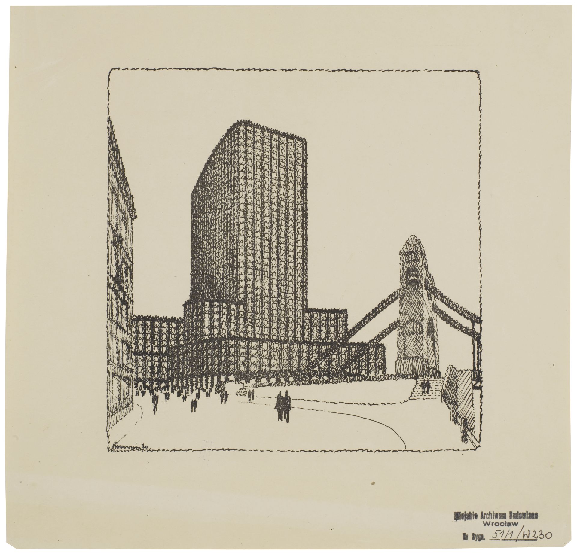 Max Berg, projekt zabudowy przy dworcu Świebodzkim, 1919-1920, zbiory Archiwum Budowlanego, oddziału MA