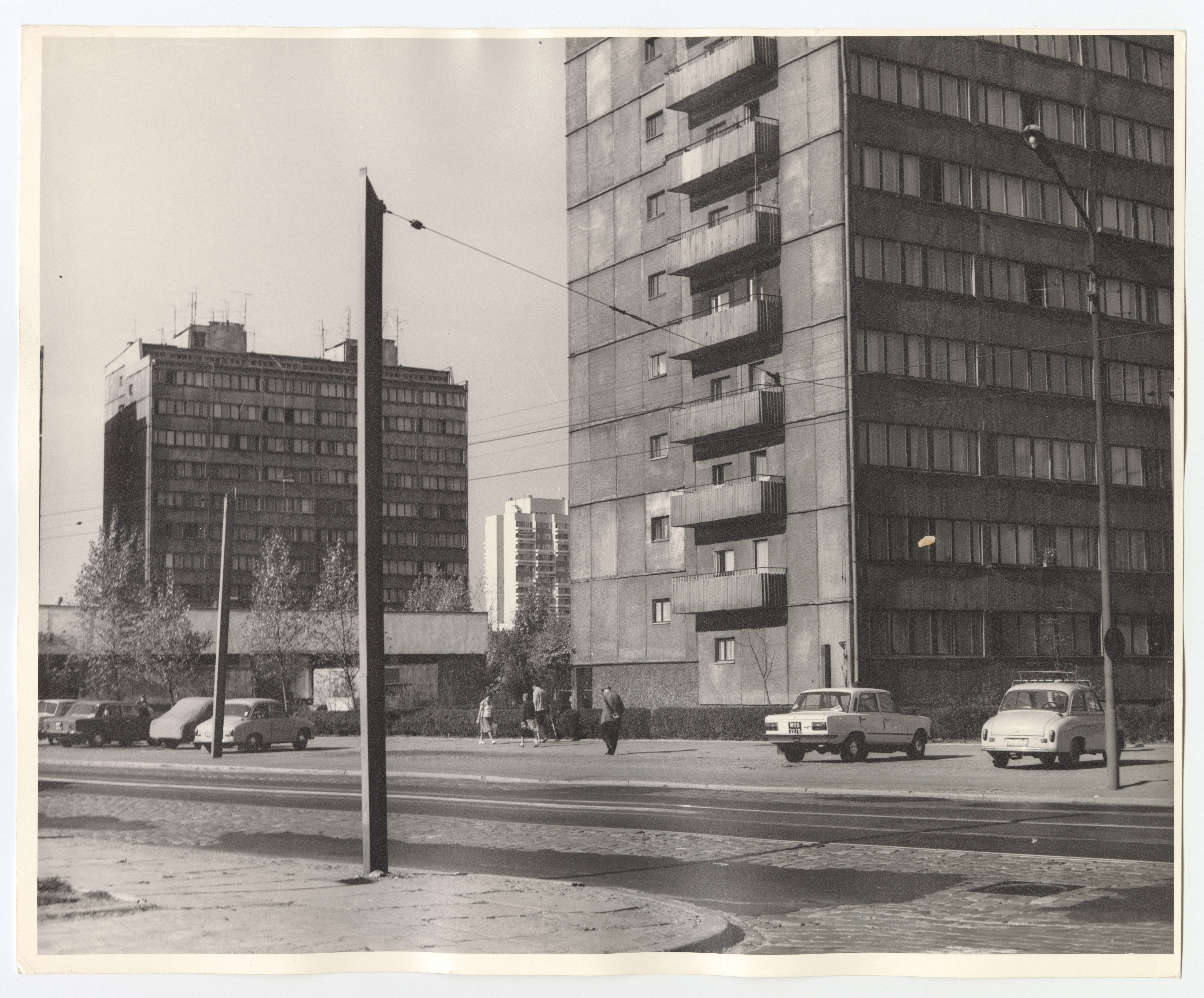 Ulica Legnicka we Wrocławiu. Bloki mieszkalne. Pawilon handlowy