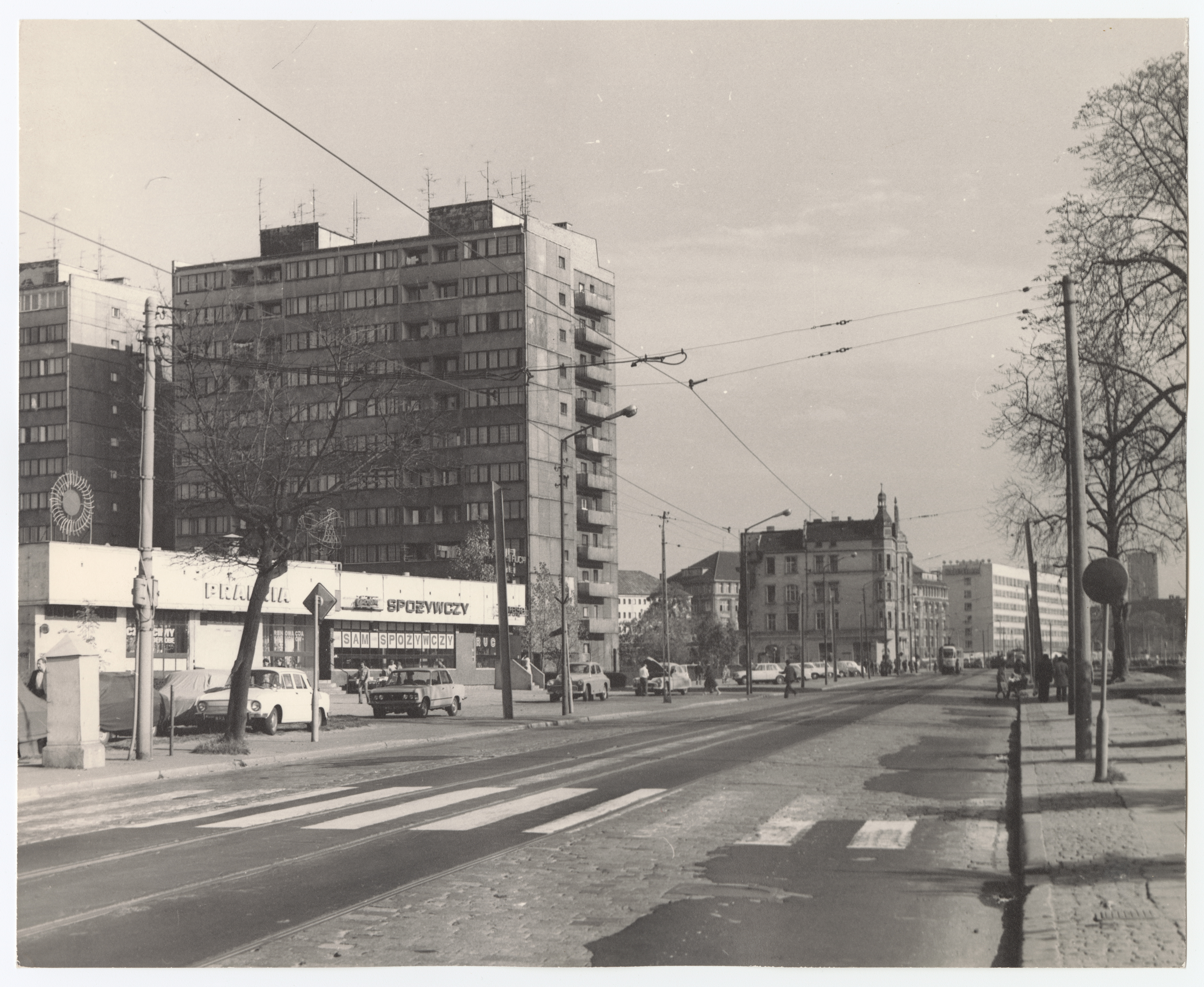 Ulica Legnicka we Wrocławiu. Bloki mieszkalne. Pawilon handlowy