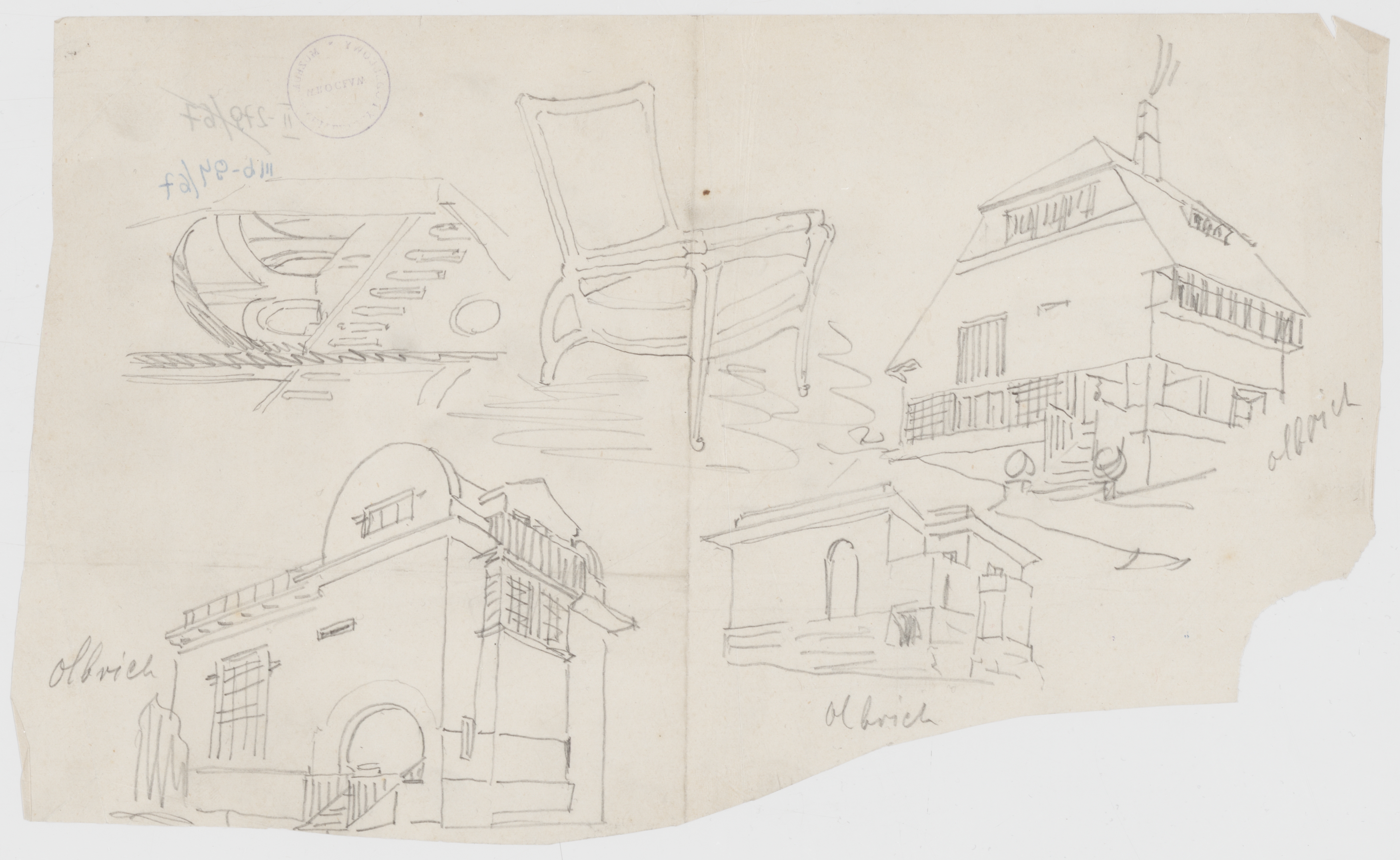 Szkice architektoniczne. Wille Josepha Marii Olbricha, wnętrze kościoła gotyckiego, fotel