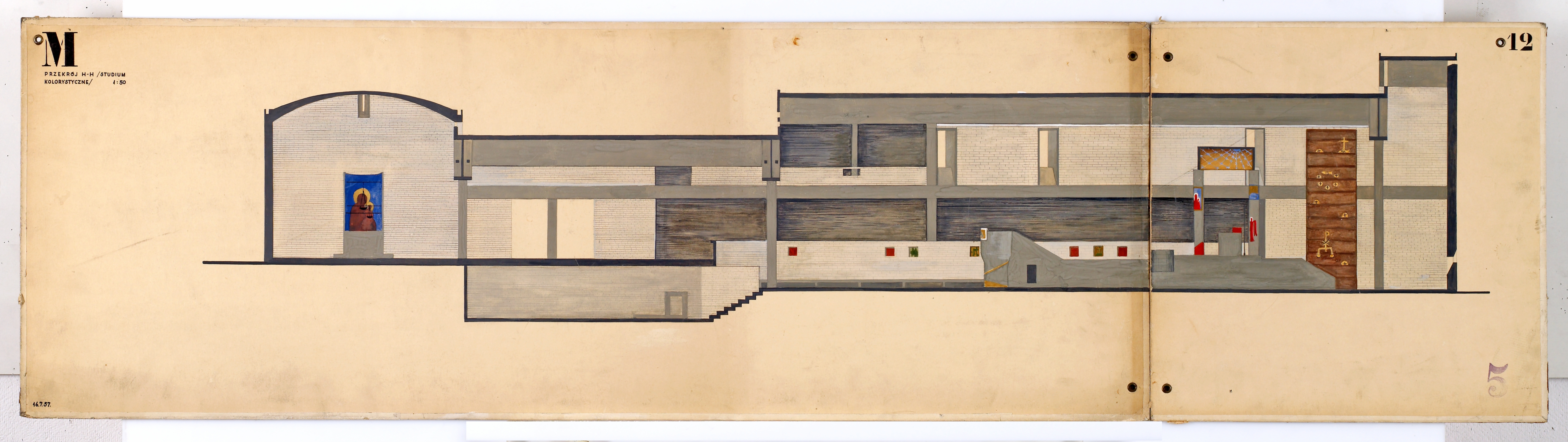 - przekrój podłużny kościoła z kolorystyką wnętrza