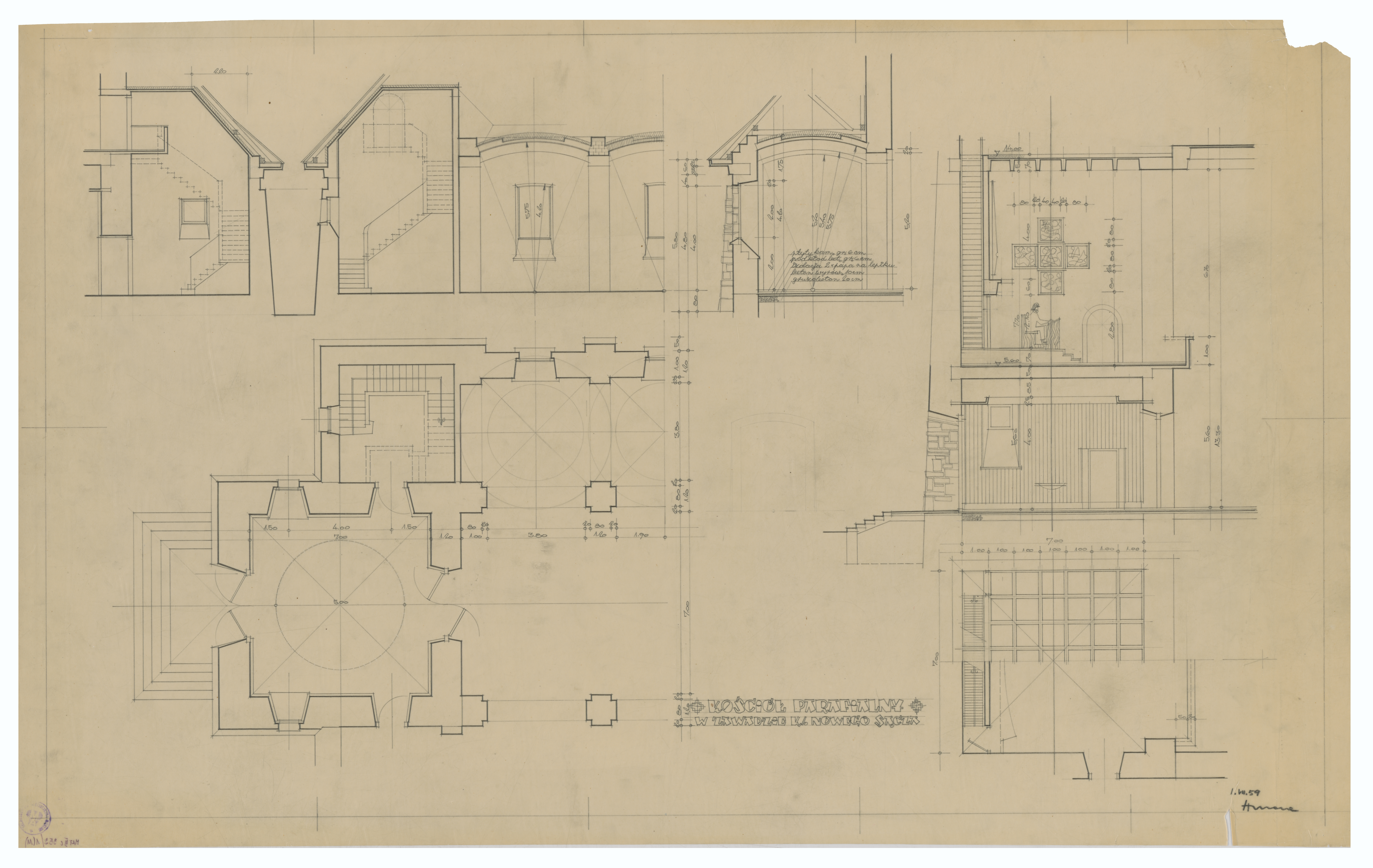 - kruchta, empora organowa, nawa boczna - fragmenty rzutów i przekroje