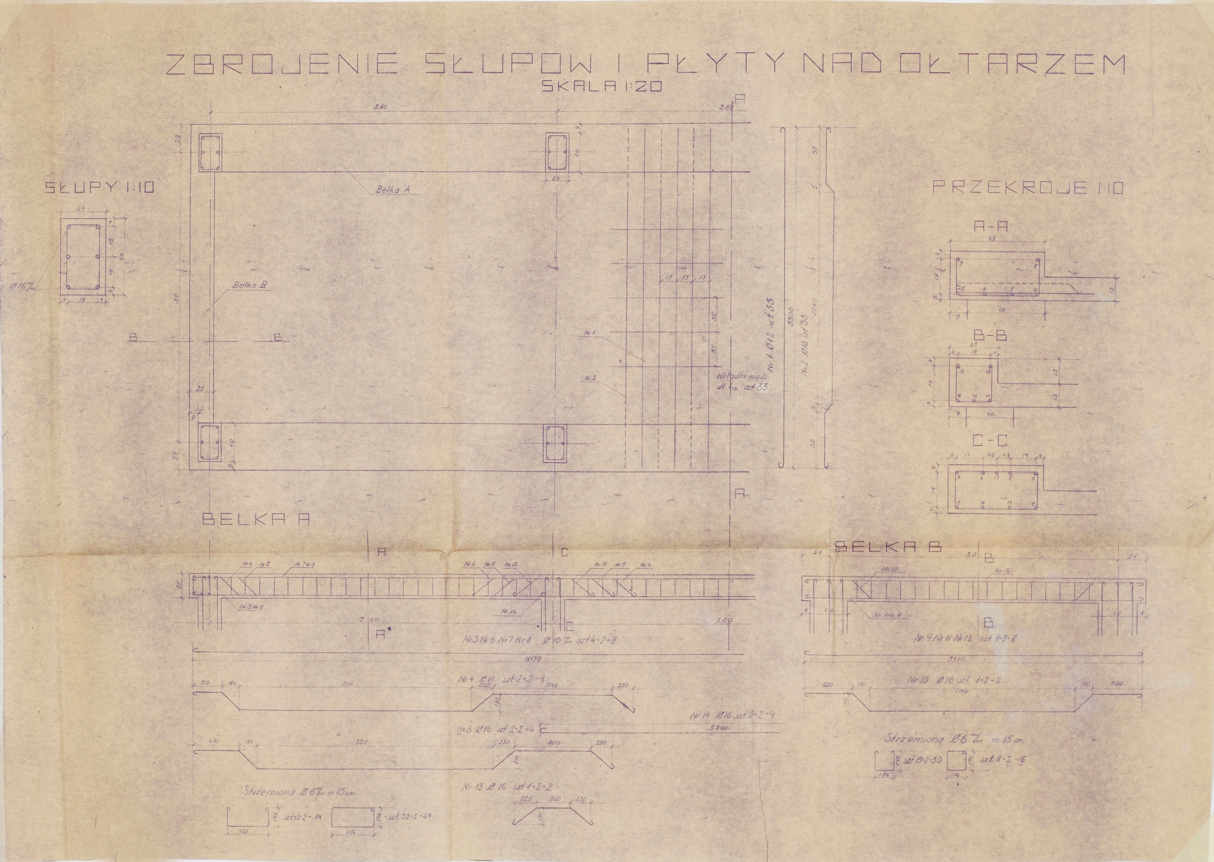 - detale zbrojenia słupów i płyty nad ołtarzem