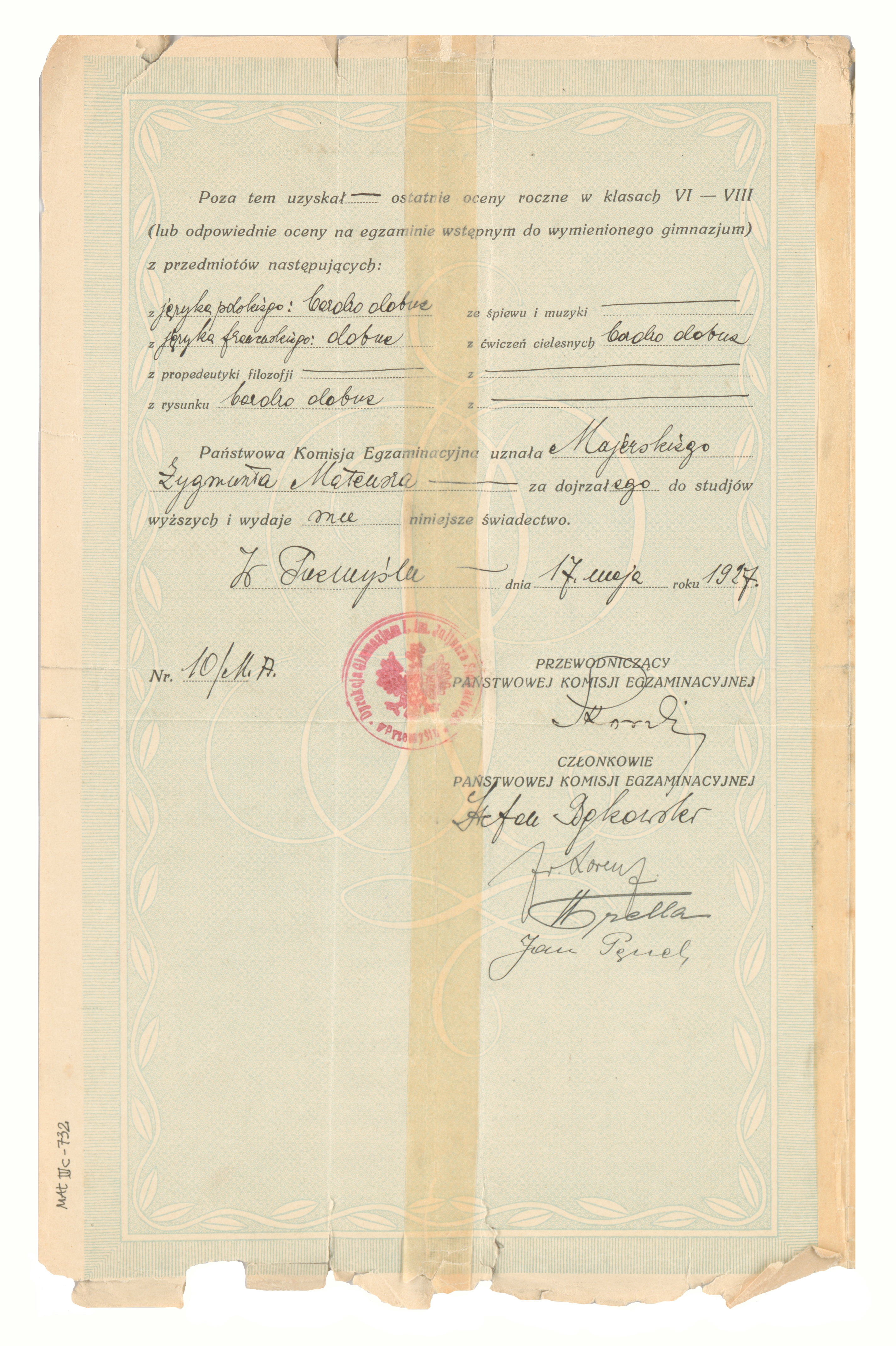 Świadectwo dojrzałości Zygmunta Majerskiego