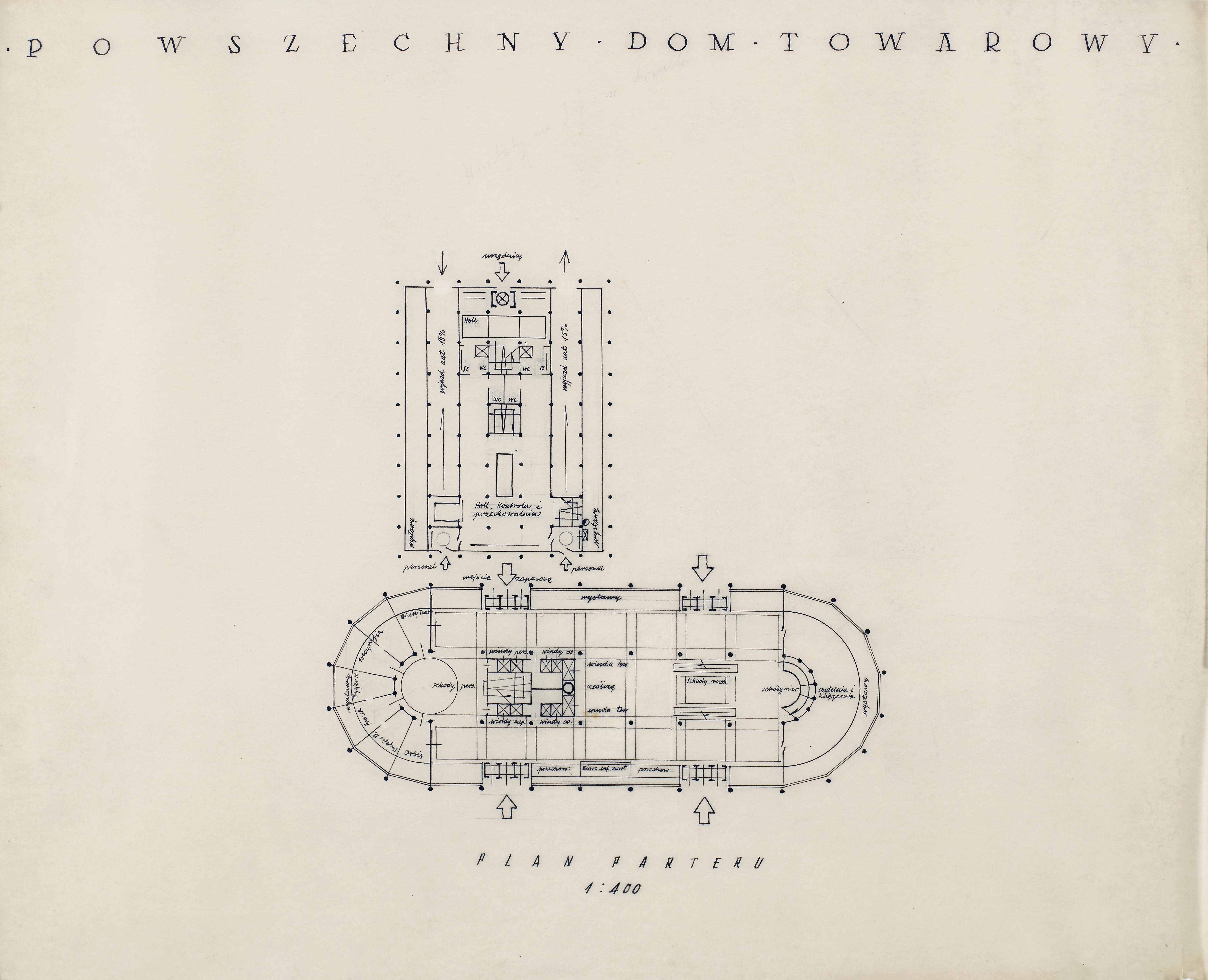- projekt konkursowy, budynek zrealizowany jako Centralny Dom Towarowy