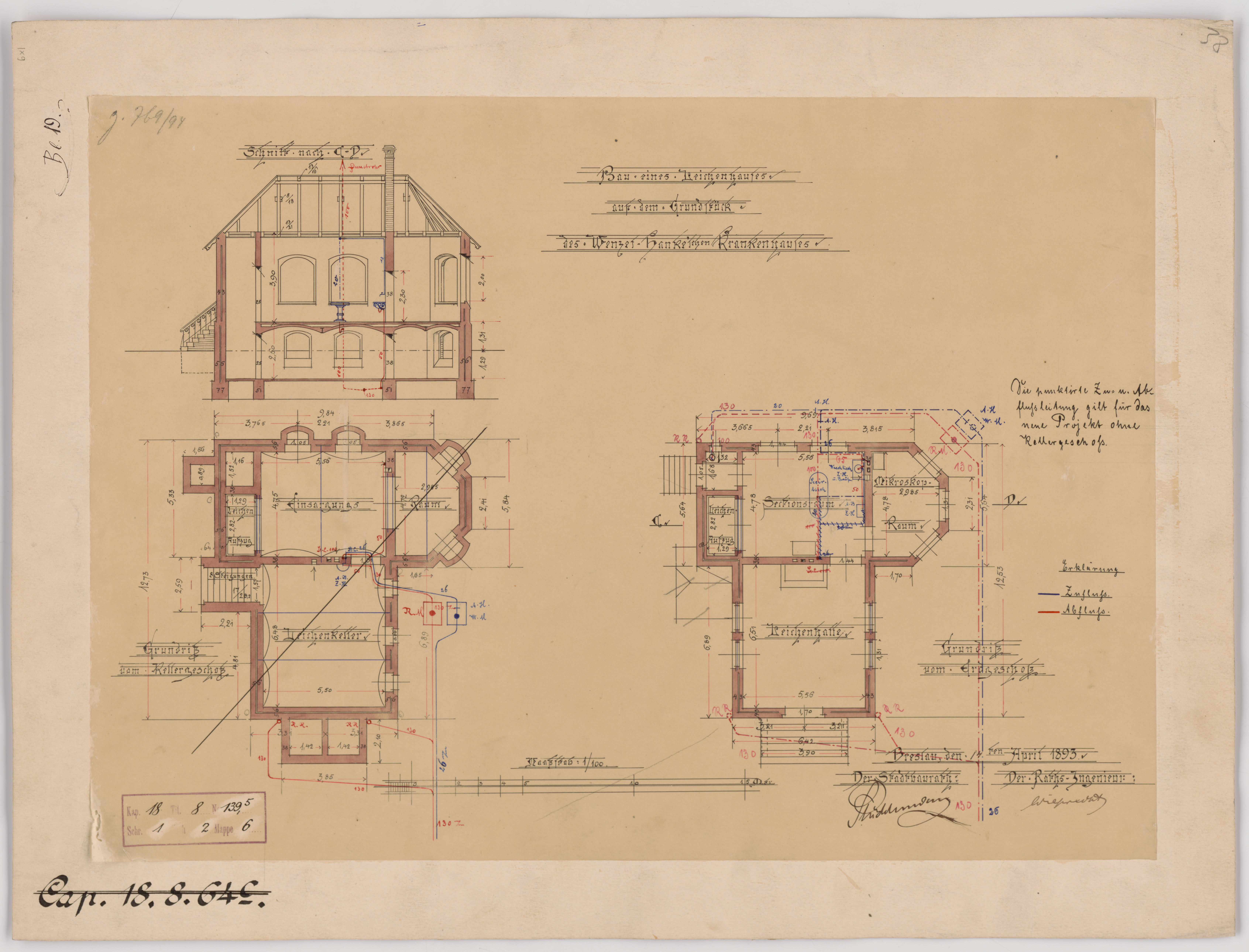 - rzuty piwnic i parteru, przekrój poprzeczny