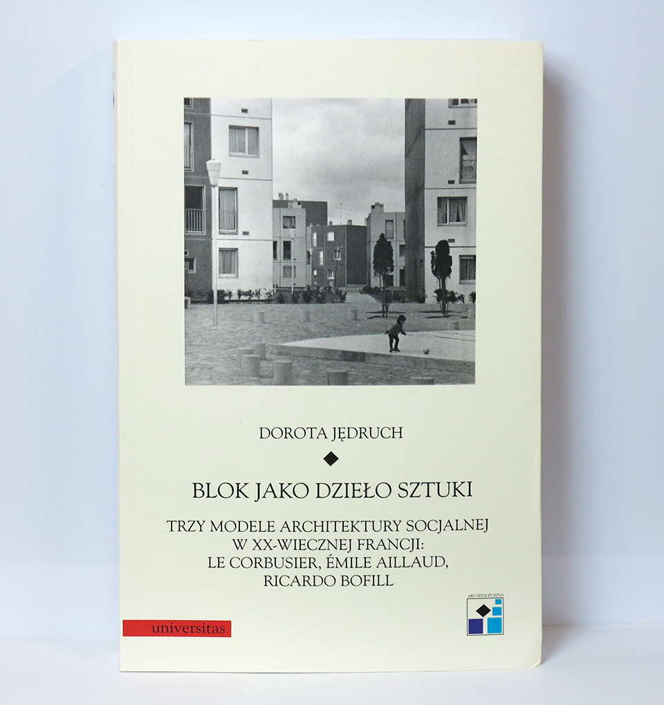 Blok jako dzieło sztuki. Trzy modele architektury socjalnej w XX-wiecznej Francji: Le Corbusier, Emile Aillaud, Ricardo Bofill – opis wydawcy Książka poświęcona jest historii francuskich blokowisk. Twórczość trzech architektów: Le Corbusiera, Émile’a Aillauda i Ricarda Bofilla wytycza w wieku XX trzy węzłowe momenty w dyskusji o tym, jak ma wyglądać mieszkanie dla mas: począwszy od normatywnych, modernistycznych koncepcji Le Corbusiera (formułowanych już w okresie międzywojennym, a realizowanych po 1945 roku), przez idee Aillauda, który w modernistyczny model włącza dekorację architektoniczną (w latach 60. i70), po postmodernistyczne osiedla projektowane przez Bofilla we Francji (w latach 80). Analizując koncepcje społeczne i estetyczne prezentowanych twórców, autorka stara się podważać wizję masowego mieszkalnictwa jako zagadnienia wyłącznie funkcjonalistycznego. Obserwuje różne wątki znaczeniowe: dekoracje, nawiązania i cytaty z tradycji obecne w architekturze socjalnej od XVIII w., prezentując dyskusję o modelu bloku wielorodzinnego jako dyskusję o dziele sztuki. Jej elementami okazują się takie wątki jak relacja z naturą, motyw pierwotnej siedziby człowieka, tradycja śródziemnomorska, pojęcie archetypu. Elementy te łączą – pozornie bardzo odmienne – omawiane koncepcje osiedli mieszkaniowych.