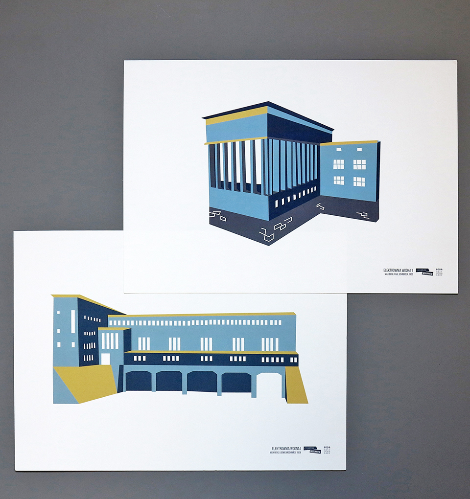Zestaw obejmuje dwie grafiki: Elektrownię Wodną I oraz Elektrownię Wodną II.